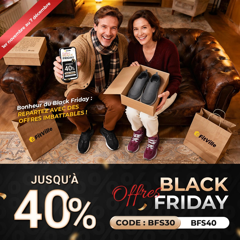 Les chaussures pour diabétiques FitVille EasyTop sont dotées d'une boîte à orteils large et extra-large afin d'offrir un niveau de confort maximal aux personnes ayant des pieds larges ou enflés.