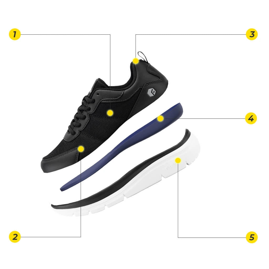 - Soporte para el arco con rebote adicional: nuestra plantilla de soporte para el arco en forma de U, combinada con una suela de EVA de alto rendimiento, garantiza una absorción óptima de los impactos.