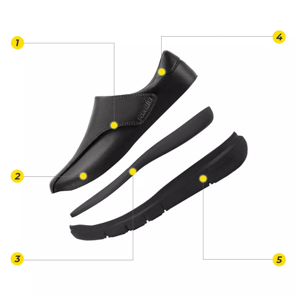 ¡Esta es exactamente la razón por la que los zapatos de vestir ortopédicos FitVille van más allá que el resto! Además de nuestra avanzada tecnología de suela EVA de 58°, también hemos incorporado un cuidadoso diseño de soporte para el arco. Este diseño está cuidadosamente elaborado por expertos en podología para brindar un soporte suave y alivio a sus pies.
