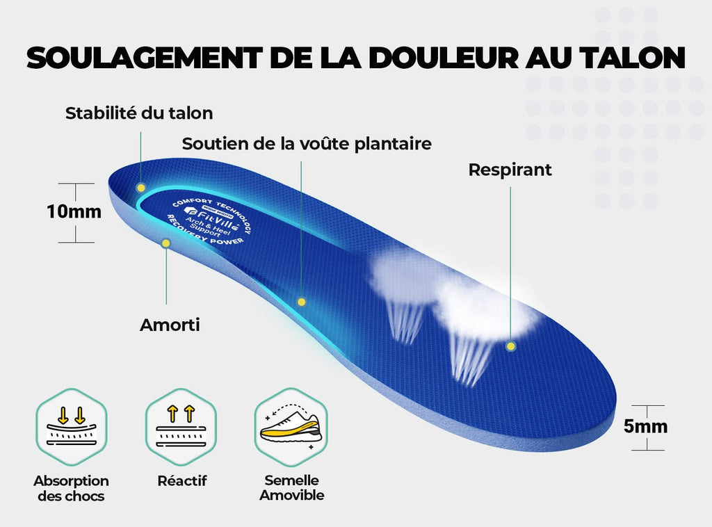 - Semelles intérieures ArchCore : Respirantes, soutien de la voûte plantaire avec un bonnet en U épousant le talon pour soulager la pression toute la journée.