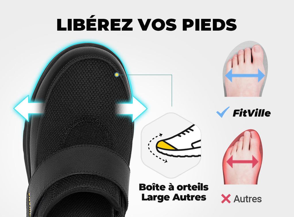- Large boîte à orteils et protection des orteils : Idéal pour les pieds diabétiques et enflés, les oignons, l’arthrite et les orteils en marteau.