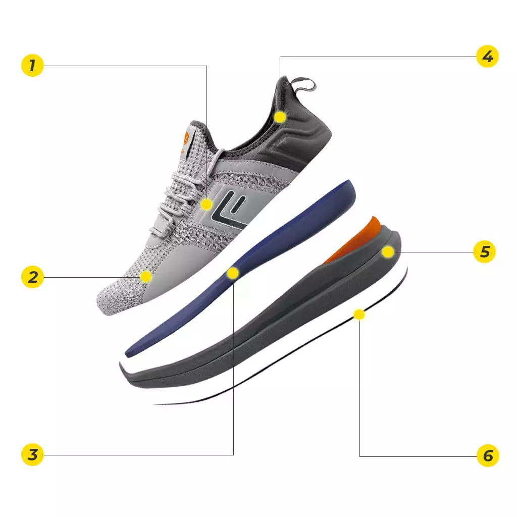 - Suela exterior: Suela de goma rígida para un agarre sólido y estabilidad de movimiento.