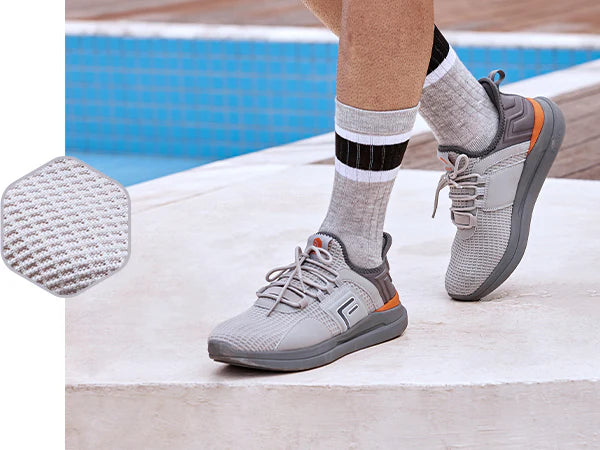 La parte superior de tejido técnico flexible envuelve tu pie, brindando una transpirabilidad inmejorable y permitiendo que tus pies respiren aire fresco.