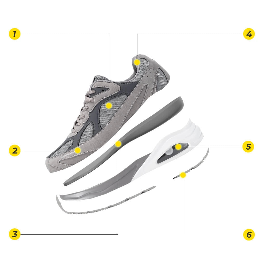 Nuestra entresuela de PU es significativamente más firme que nuestros modelos anteriores basados en EVA, brindando soporte y protección inigualables. El resultado es una sorprendente mejora en la absorción de impactos y la estabilidad. ¿Listo para ponerlo a prueba? Salta suavemente y siente la protección confiable del talón que brinda nuestro diseño con cámara de aire. En cada paso, nuestra última innovación lo cubre: confianza, comodidad y apoyo.