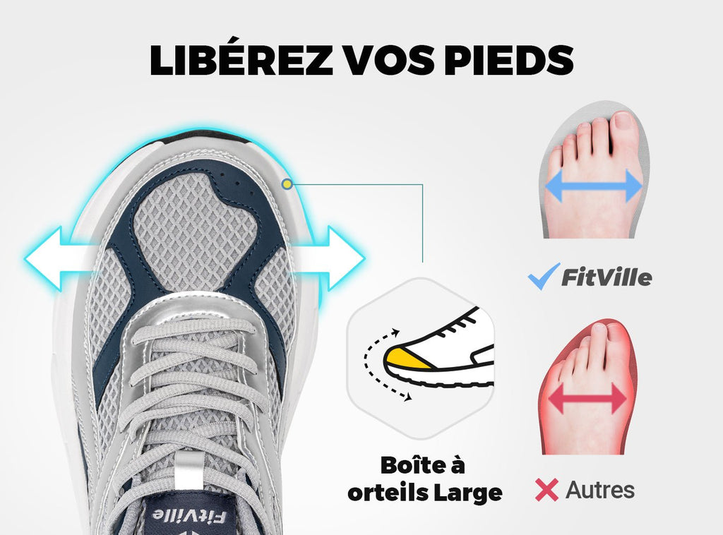 Avec leurs largeurs extra larges, leur soutien de la voûte plantaire robuste, leur amorti avancé et leur technologie antidérapante, les chaussures Rebound NEO de FitVille sont conçues pour soulager un large éventail de problèmes de pieds, notamment :