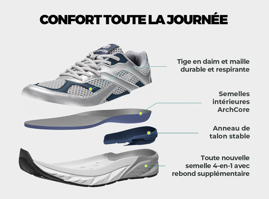 - Soutien de la voûte plantaire: Semelle intérieure ArchCore qui épouse le talon pour un soutien confortable, ferme mais flexible, sans encombrement !