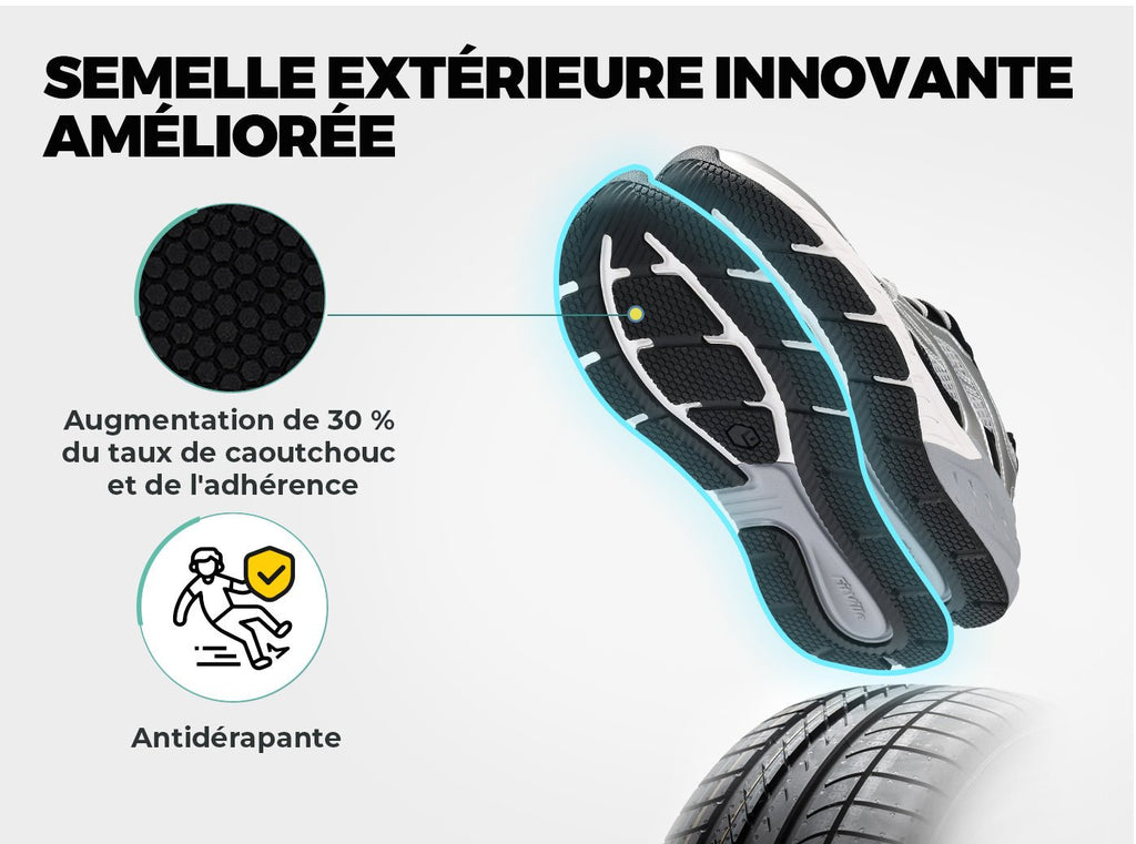 - Mélange de densité unique ajoutant un ressort à votre démarche, rendant chaque pas aussi agréable qu’une mini-vacance pour vos pieds