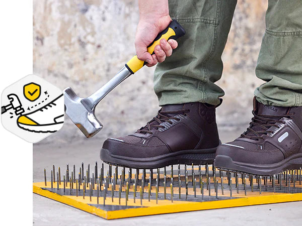 La puntera compuesta, ancha y extra ancha, ofrece una protección óptima contra los riesgos de impacto y compresión para permitirle trabajar con total seguridad. El núcleo de acero ha sido probado para soportar hasta 2500 libras de presión vertical y 75 libras de impacto vertical instantáneo. Para que puedas trabajar sin riesgos y dar lo mejor de ti.