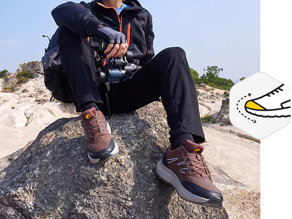 Escápese a la naturaleza y alcance nuevas alturas con Sturdy Core de FitVille. Un zapato de senderismo clásico actualizado con una emocionante silueta baja. Parte superior transpirable e impermeable con suela antideslizante, de construcción sólida para resistir lluvias inesperadas y superficies resbaladizas. La puntera ancha y extra ancha proporciona un amplio espacio para acomodar los pies hinchados después de largas caminatas. Además, la entresuela de EVA que absorbe los impactos brinda todo el apoyo que necesitas para la aventura interminable que te espera.