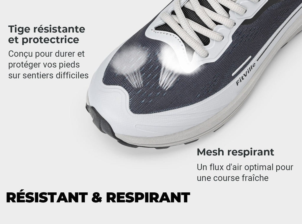 Chez FitVille, nous utilisons des semelles TPR dans nos chaussures de trail running car elles offrent un équilibre entre flexibilité et résilience, ce qui est crucial pour les conditions difficiles des trails. Ces semelles offrent une excellente traction et sont capables de résister à des terrains et des conditions météorologiques variés, ce qui les rend idéales pour les chaussures de course en extérieur.