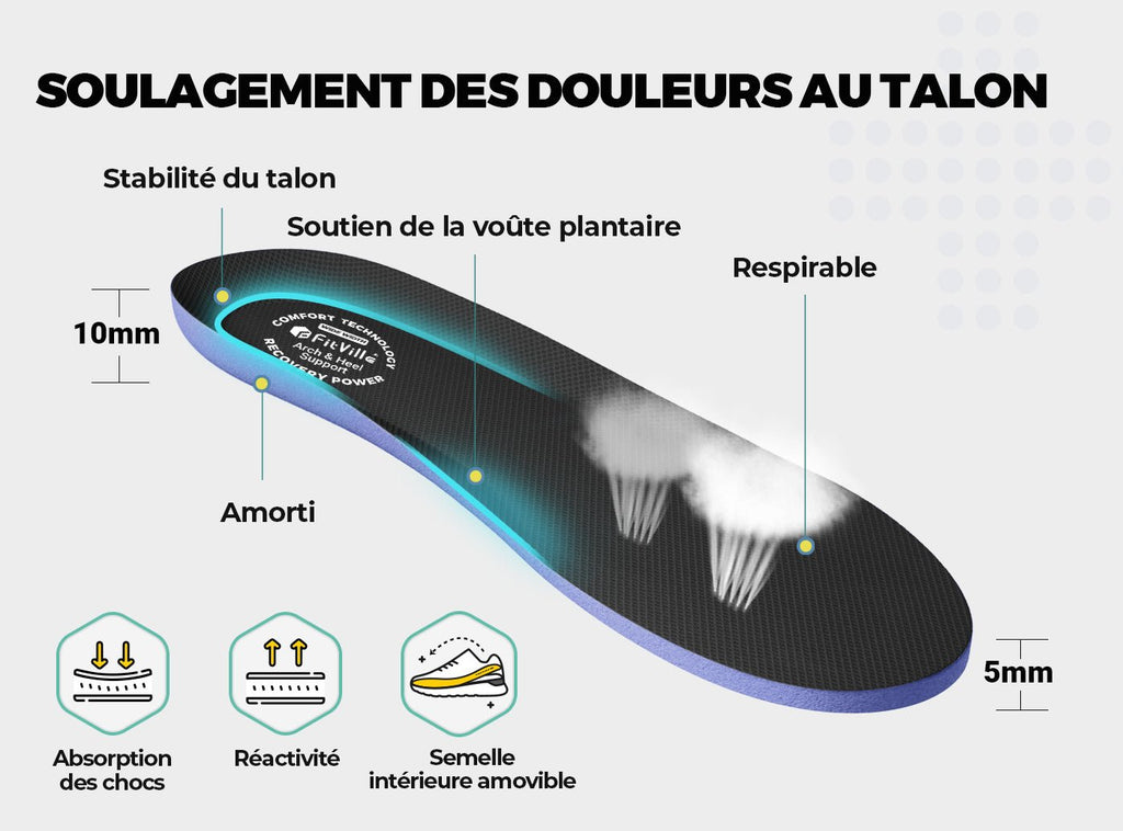 - Soutien et soulagement de la voûte plantaire : Semelle intérieure en forme de U pour une pression équilibrée et une douleur immédiate au pied.