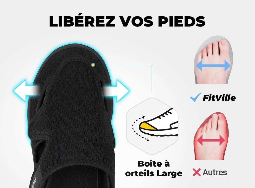 - Large boîte à orteils et protection des orteils : Idéale pour les pieds diabétiques et enflés, les oignons, l'arthrite et les orteils en marteau.