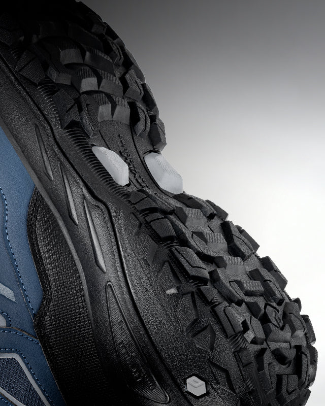 Crampons 5 mm + semelle double densité : traction stable et stabilité amortie sur tout terrain.