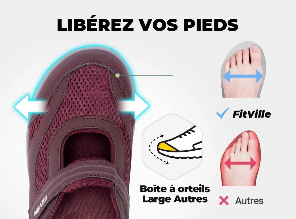 Chaque paire de sandales orthopédiques FitVille est conçue pour un confort immédiat, sans période d'adaptation. L'intérieur est doublé d'un tissu soyeux, lisse et extensible pour un contact doux avec la peau.