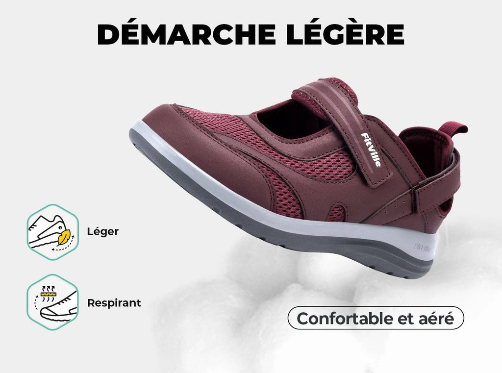 La semelle intermédiaire en EVA moulé par compression, qui est environ 15 % plus légère que l'EVA normal, offre une qualité supérieure avec une durabilité accrue et un meilleur amorti. Elle est donc parfaite pour relever les défis d'une démarche incorrecte et d'une répartition inégale de la pression, souvent rencontrés par les personnes souffrant d'affections du pied et d'obésité. FitVille utilise ce matériau de pointe pour garantir un confort et un soutien prolongés, soulageant ainsi vos pieds et améliorant leurs performances.