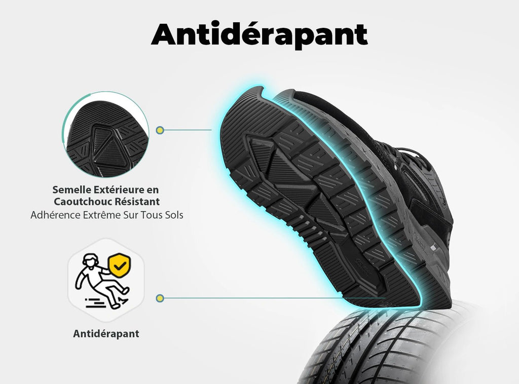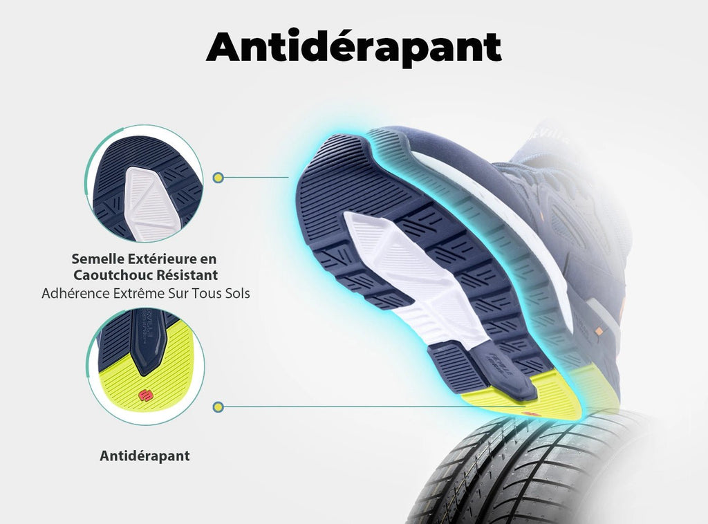 - Resistenza allo scivolamento ai vertici della categoria: la suola in gomma è progettata in modo intelligente per fornire una migliore aderenza al terreno.