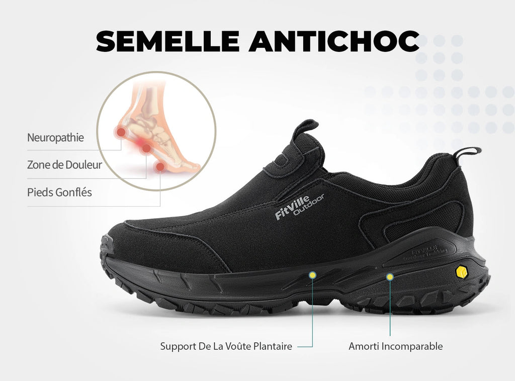 La scarpa bassa LugMax V3 di FitVille Homme è la scarpa di cui hai bisogno quando vuoi affrontare un'escursione senza pagare il prezzo in seguito in dolori ai piedi, alle ginocchia o alla schiena. La tomaia adattiva offre comfort traspirante con rete morbida e nabuk resistente, con puntale rinforzato e puntale spazioso. Il design Step Ease™ rende indossare la scarpa un gioco da ragazzi: senza lacci, senza problemi. Il sistema di stabilità a 4 punti mantiene il tuo passo allineato, alleviando la pressione dalle dita dei piedi, dalle ginocchia e dalla parte bassa della schiena dopo una lunga giornata sui sentieri. Aggiungete a ciò la robusta suola da 5 mm per una presa formidabile e avrete la scarpa ideale per combattere il dolore ai piedi come la fascite plantare. Pronti a muovervi senza rimpianti?