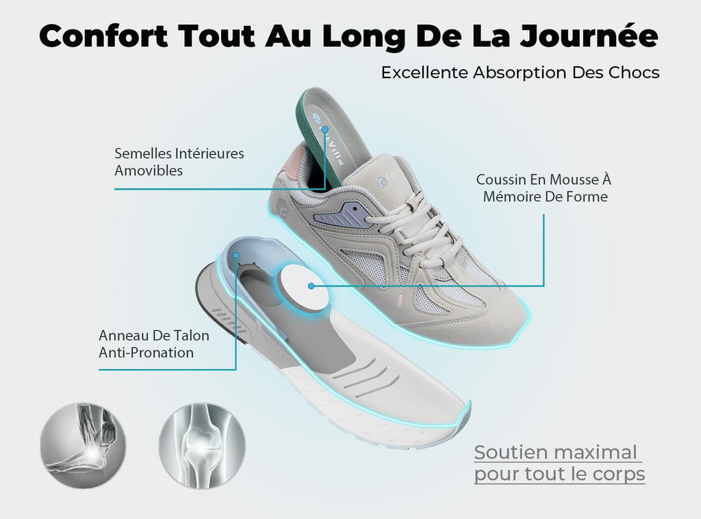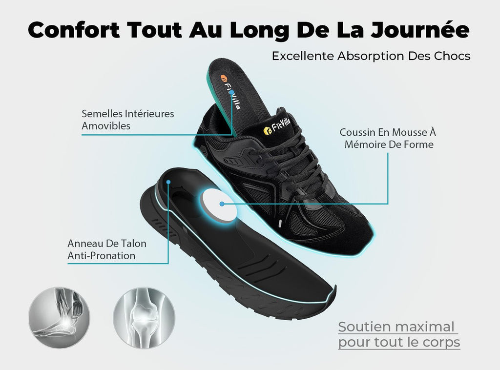 Dotate della tecnologia ErgoFit™, le scarpe FitVille sono progettate ergonomicamente e ti offrono un'esperienza di calzata straordinaria. L'ammortizzazione elastica riduce al minimo l'impatto e massimizza la stabilità.