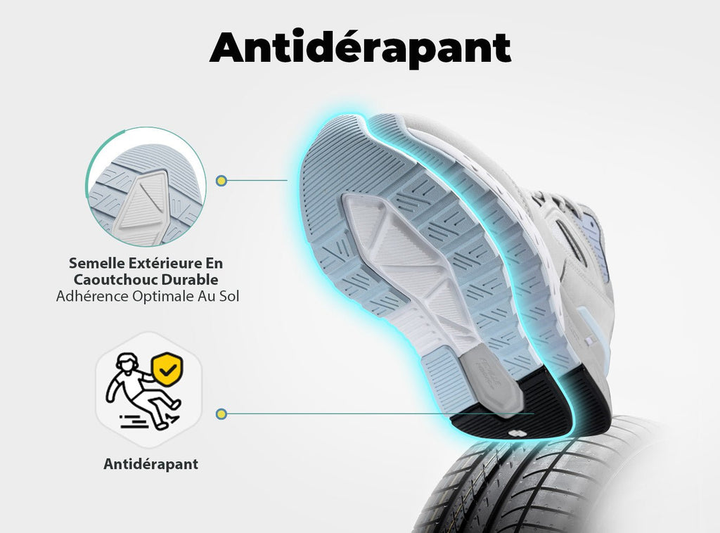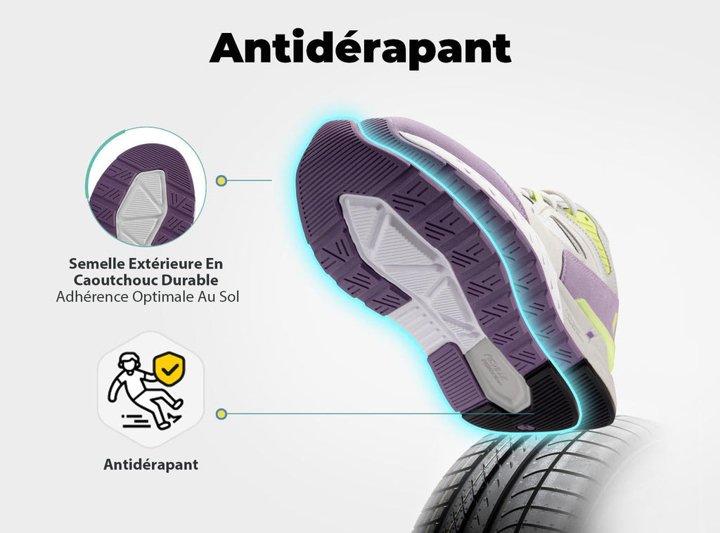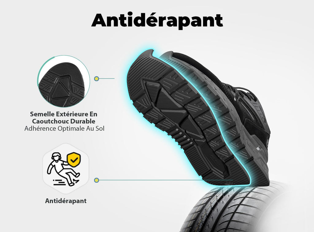 - Resistenza allo scivolamento ai vertici della categoria: la suola in gomma è progettata in modo intelligente per fornire una migliore aderenza al terreno.