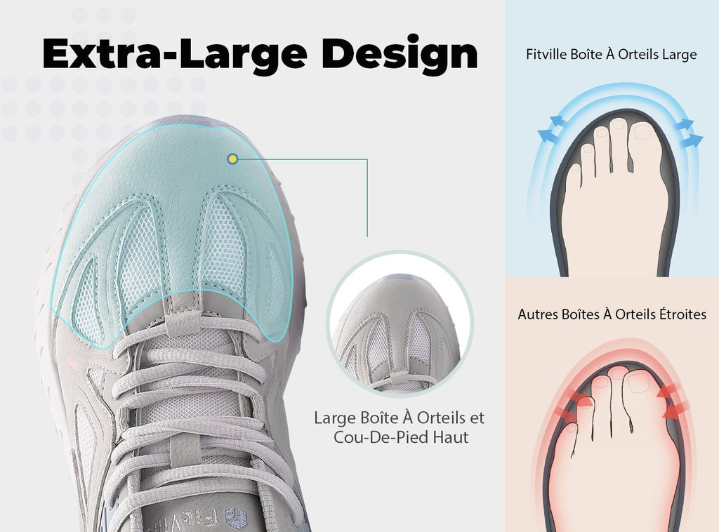 La tecnologia FitVille Comfort+™ mette il comfort al servizio del movimento. Questa tecnologia avanzata segue il contorno dei tuoi piedi per migliorare i tuoi movimenti.