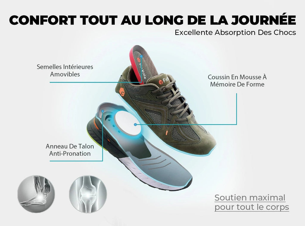 Dotate della tecnologia ErgoFit™, le scarpe FitVille sono progettate ergonomicamente e ti offrono un'esperienza di calzata straordinaria. L'ammortizzazione elastica riduce al minimo l'impatto e massimizza la stabilità.