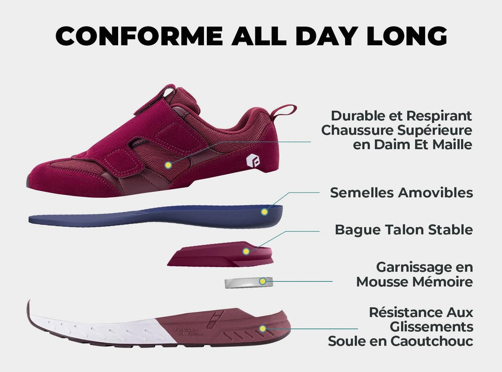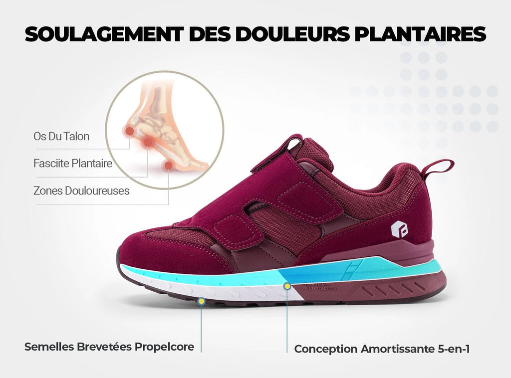 Con larghezze extra ampie, robusto supporto dell'arco plantare, ammortizzazione avanzata e tecnologia antiscivolo, le scarpe Rebound Core di FitVille sono progettate per alleviare una serie di problemi ai piedi, tra cui:
