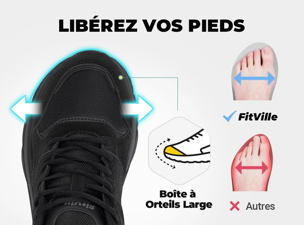 Con larghezze extra ampie, robusto supporto dell'arco plantare, ammortizzazione avanzata e tecnologia antiscivolo, le scarpe Rebound NEO di FitVille sono progettate per alleviare una serie di problemi ai piedi, tra cui: