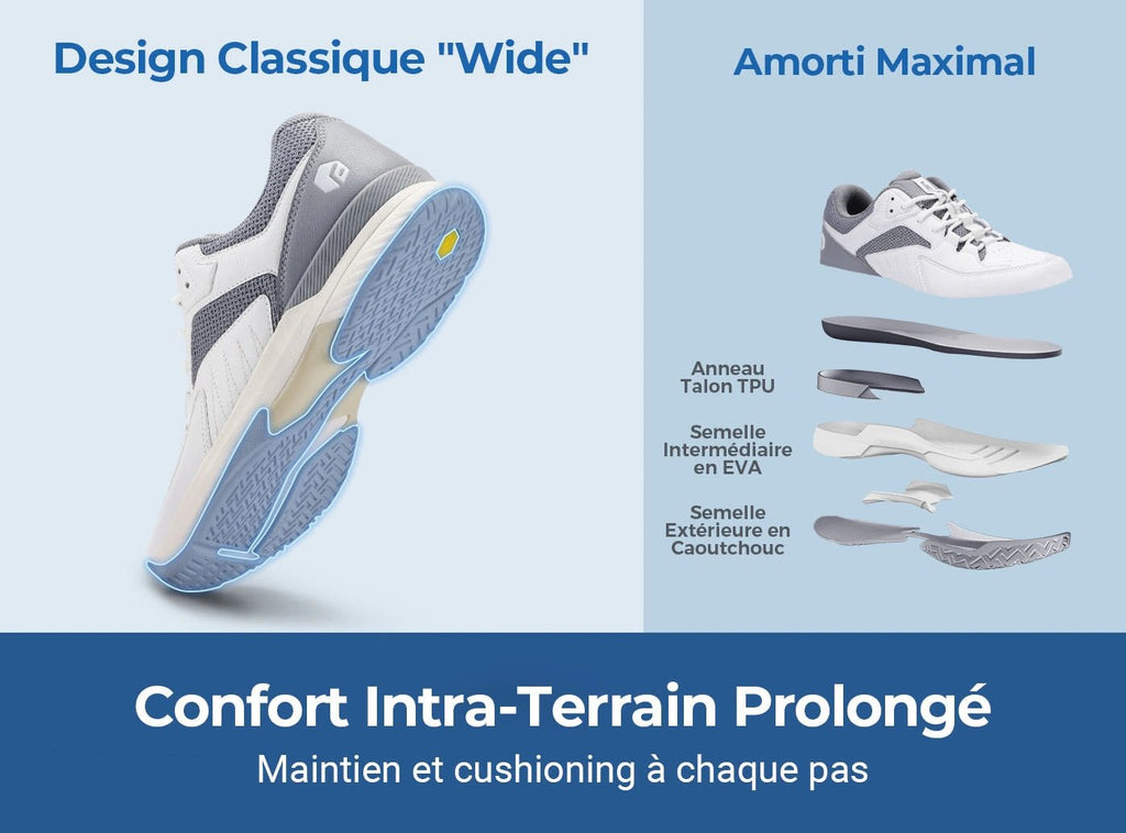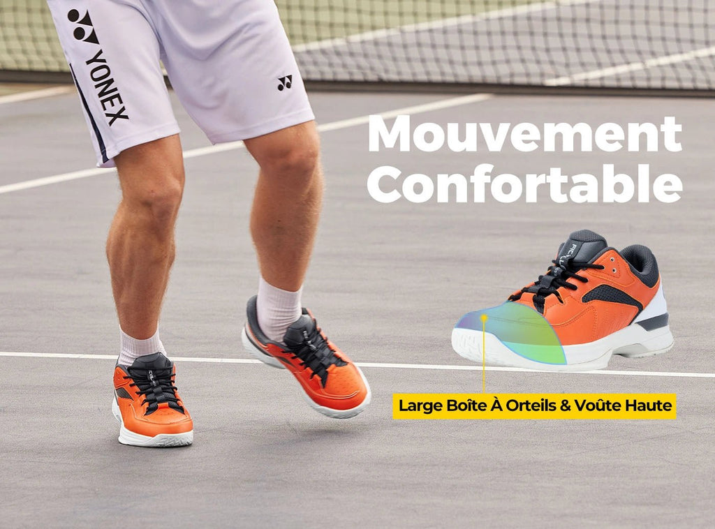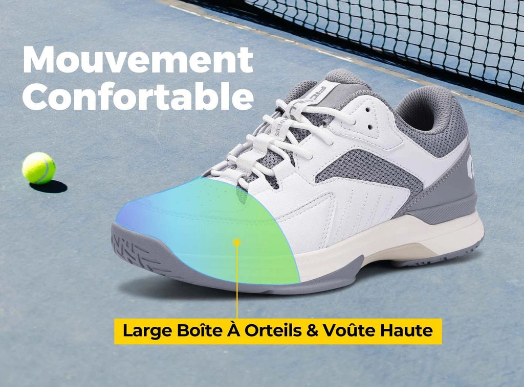 Améliorez votre jeu avec les chaussures de tennis et de pickleball FitVille Amadeus. Conçues pour les joueurs professionnels et amateurs, ces chaussures offrent des performances optimales grâce à leur conception antidérapante et résistante à la torsion, ce qui vous permet de vous déplacer librement sur n'importe quel terrain.