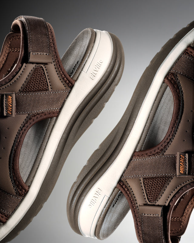 Des sandales de tous les jours faites pour les pieds larges. Léger, respirant et amorti avec un support de la voûte plantaire pour des marches stables et sans pression partout.