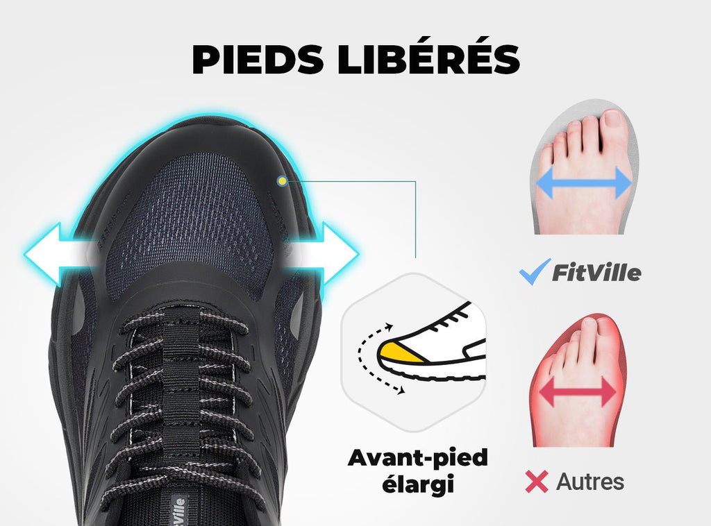 Avec leurs largeurs extra larges, leur soutien de la voûte plantaire robuste, leur amorti avancé et leur technologie antidérapante, les chaussures Rebound NEO de FitVille sont conçues pour soulager un large éventail de problèmes de pieds, notamment :