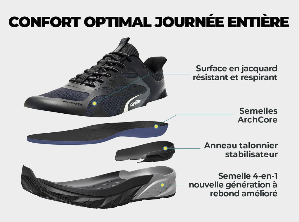 - Soutien de la Voûte Plantaire : Semelle intérieure ArchCore enveloppante pour un maintien confortable, ferme mais flexible, sans surcharge !