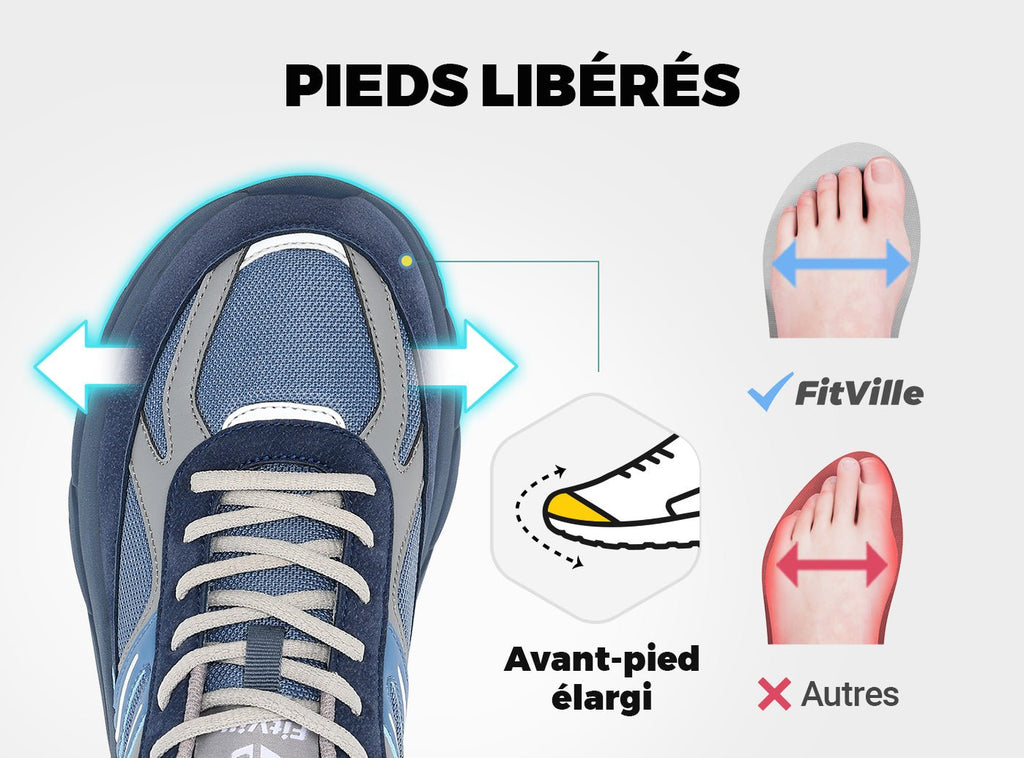 Avec leurs largeurs extra larges, leur soutien de la voûte plantaire robuste, leur amorti avancé et leur technologie antidérapante, les chaussures Rebound NEO de FitVille sont conçues pour soulager un large éventail de problèmes de pieds, notamment :
